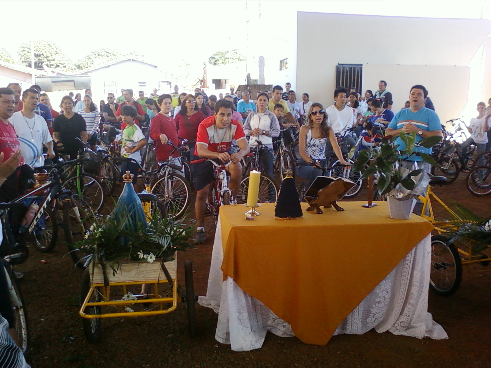 Durante a Pedalada grupos de jovens apresentavam orações, preces e cânticos. Após pedalarem 5 km, os jovens voltaram a frente da catedral onde receberam a benção do Pároco da Catedral.