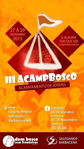 “A alegria tem que ser compartilhada”. Baseado nesse tema será realizado, entre os dias 27 e 29 de novembro, a terceira edição do AcampBosco – Acampamento de Jovens, na Casa de Retiro dos Salesianos, em Barbacena-MG.