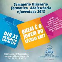 A Rede Marista de Solidariedade, parte do Grupo Marista, realiza no dia 31 de agosto, o Seminário Marista para a Adolescência e Juventude 2013, para debater o tema Quem é o jovem do século XXI?, no Centro Social Marista Ir. Rui, em Ribeirão Preto.