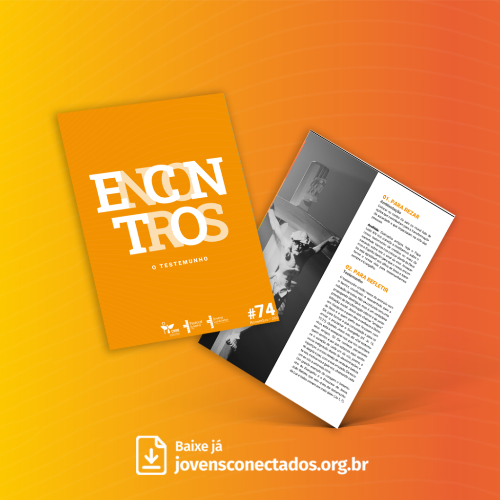 O Encontro #74 – O testemunho convida os jovens a compreenderem que o testemunho cristão nasce da amizade profunda com Jesus Cristo, crucificado e ressuscitado, e se expressa no cotidiano como força de transformação pessoal e social. Inspirado no chamado de Jesus “Vós também dareis testemunho” Jo 15,27 e no exemplo de João Batista, o subsídio ajuda a refletir que testemunhar não é fazer propaganda religiosa, mas viver com coerência, humildade e coragem, tornando visível o Evangelho por meio de atitudes concretas de amor, justiça, proximidade e serviço no meio da sociedade.