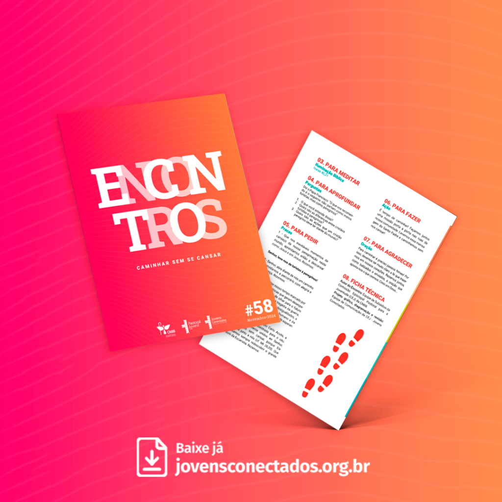 O Encontro #58 – Caminhar sem se cansar convida os jovens a compreenderem a vida cristã como uma peregrinação marcada por esperança, sentido e perseverança, mesmo em meio ao cansaço e aos desafios do caminho. Inspirado na Palavra de Deus e na mensagem do Papa Francisco para as Jornadas Mundiais da Juventude, o subsídio ajuda a refletir sobre a diferença entre viver como “turistas” ou como verdadeiros peregrinos da esperança, mostrando que é no seguimento de Jesus, sustentados pela fé e pela Eucaristia, que encontramos força para continuar caminhando com alegria e compromisso.