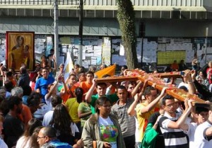 A Cruz e o Ícone vão percorrer as 276 dioceses no Brasil até a vinda do Papa Francisco, em julho deste ano, para a Jornada Mundial da Juventude no Rio de Janeiro. Os símbolos da Jornada estão passando por todos os 17 regionais da Conferência Nacional dos Bispos do Brasil.