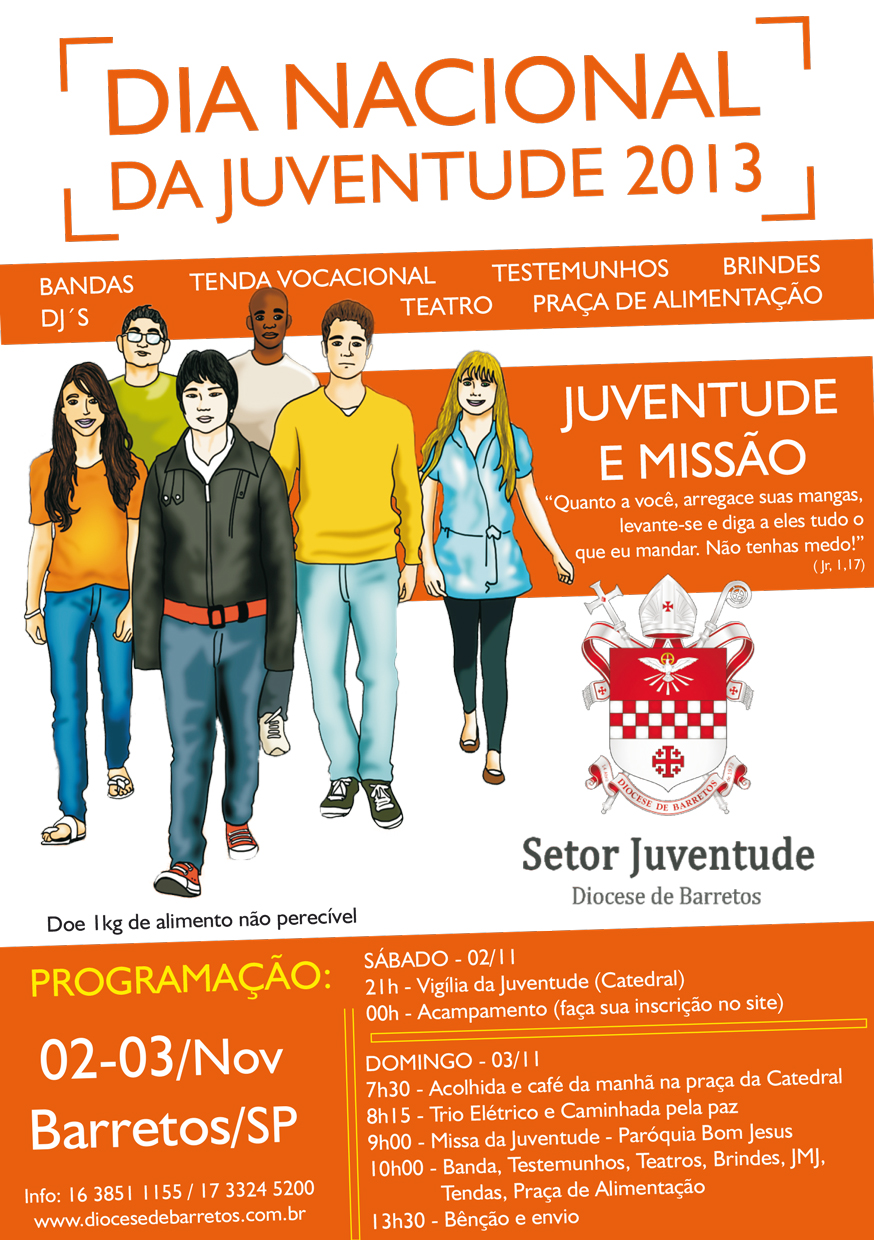 Nos dias 02 e 03 de novembro, a Diocese de Barretos, no interior de São Paulo, celebrará o Dia Nacional da Juventude (DNJ). O evento marcará o grande carinho dedicado pela da Igreja aos jovens nesse ano de 2013. Durante o evento será feita memória da Campanha da Fraternidade com o tema Fraternidade e Juventude, da Semana Missionária e da Jornada Mundial da Juventude.