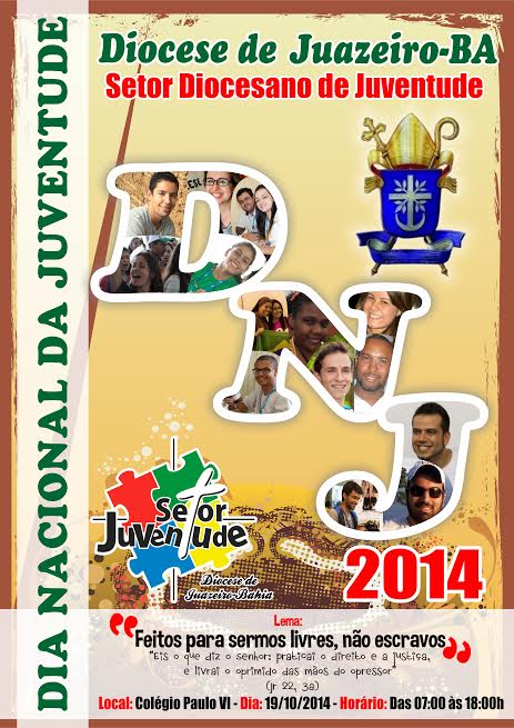 A Diocese de Juazeiro (BA) realiza no próximo domingo (19), o Dia Nacional da Juventude (DNJ), principal evento da pastoral da Juvenil no Brasil. As atividades acontecerão a partir das 8h, no Colégio Municipal Paulo VI.
