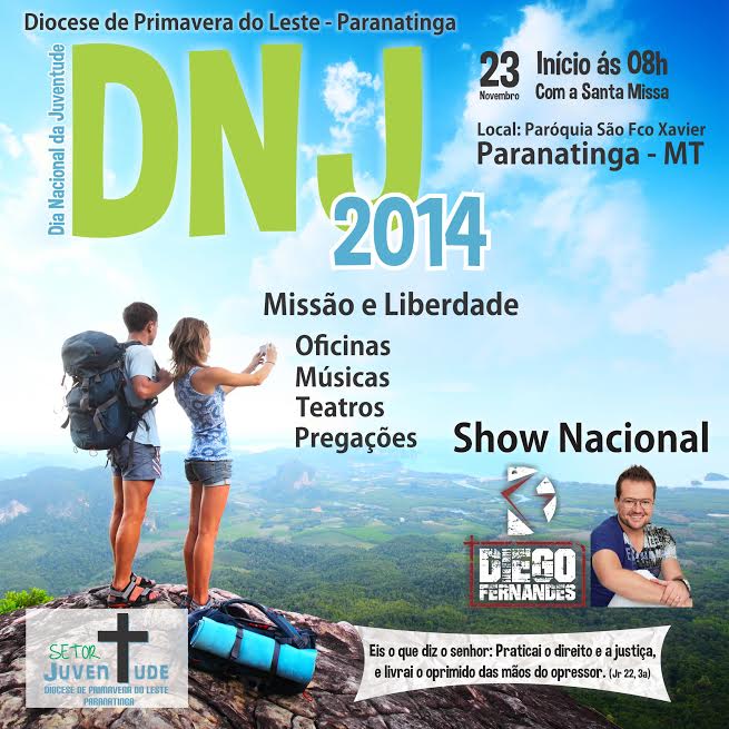 A Recém criada Diocese de Primavera do Leste (MT), se prepara para comemorar o Dia Nacional da Juventude (DNJ). O evento organizado pelo Setor Juventude acontece no próximo dia 23 de novembro, na Paróquia São Francisco Xavier, na cidade de Paranatinga.