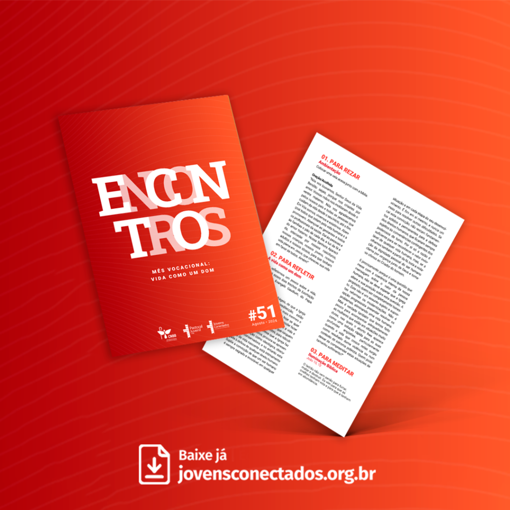O Encontro #51 – Mês Vocacional: vida como um dom convida os jovens a refletirem sobre o valor sagrado e inviolável da vida humana, reconhecendo-a como presente de Deus desde a concepção até o fim natural. À luz do Evangelho e da Exortação Apostólica Evangelii Gaudium, o subsídio ajuda a compreender que defender a vida é assumir uma postura coerente de amor, cuidado e responsabilidade, promovendo a dignidade humana, a solidariedade e o compromisso cristão com aqueles que mais sofrem.