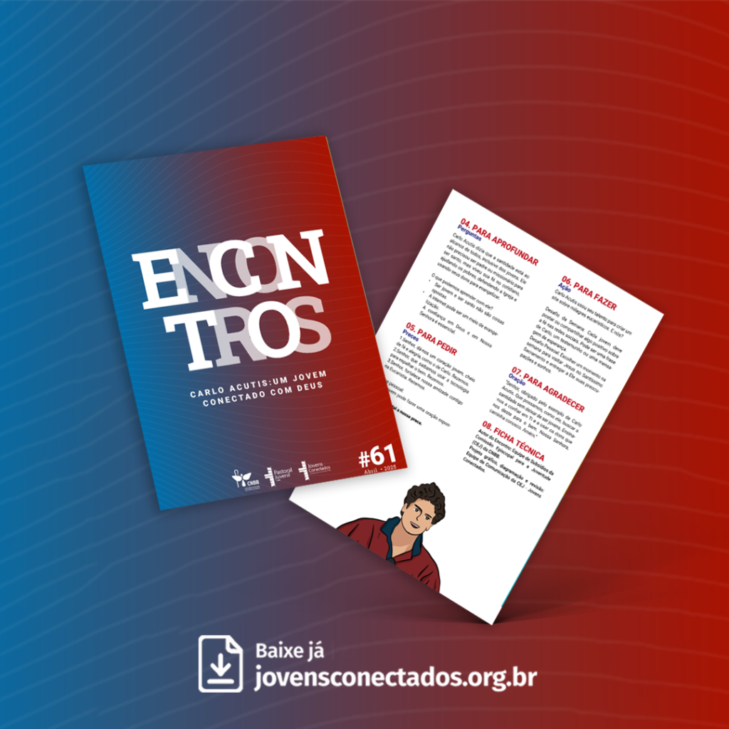 O Encontro #61 – Carlo Acutis: um jovem conectado com Deus convida os jovens a refletirem sobre como viver a fé de forma autêntica em um mundo marcado pela velocidade, pela tecnologia e pelas redes sociais. Inspirado no testemunho do Beato Carlo Acutis, o subsídio ajuda a compreender que é possível ser jovem, conectado e alegre sem perder o essencial, colocando a Eucaristia no centro da vida e utilizando a internet como espaço de evangelização, testemunho e serviço, vivendo a santidade no cotidiano com propósito e amor a Deus.