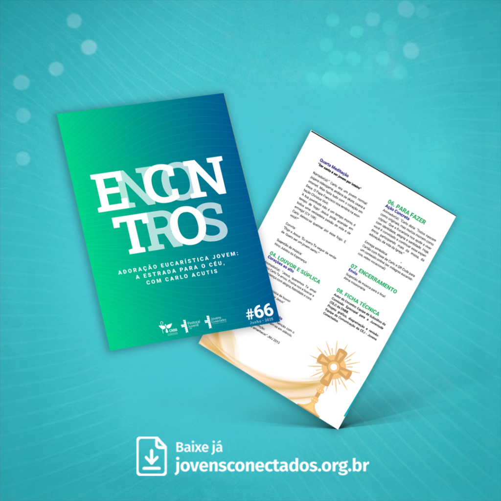 O Encontro #66 Adoração eucarística jovem a estrada para o céu com Carlo Acutis convida os jovens a viverem um encontro profundo, silencioso e transformador com Jesus presente na Eucaristia. Inspirado no testemunho de Carlo Acutis, que chamava a Eucaristia de “minha estrada para o céu”, o subsídio conduz a uma experiência orante que ajuda a reconhecer a presença real de Cristo, a deixar-se transformar pelo seu amor e a compreender que a adoração fortalece a fé, reacende a esperança e impulsiona à missão no cotidiano.