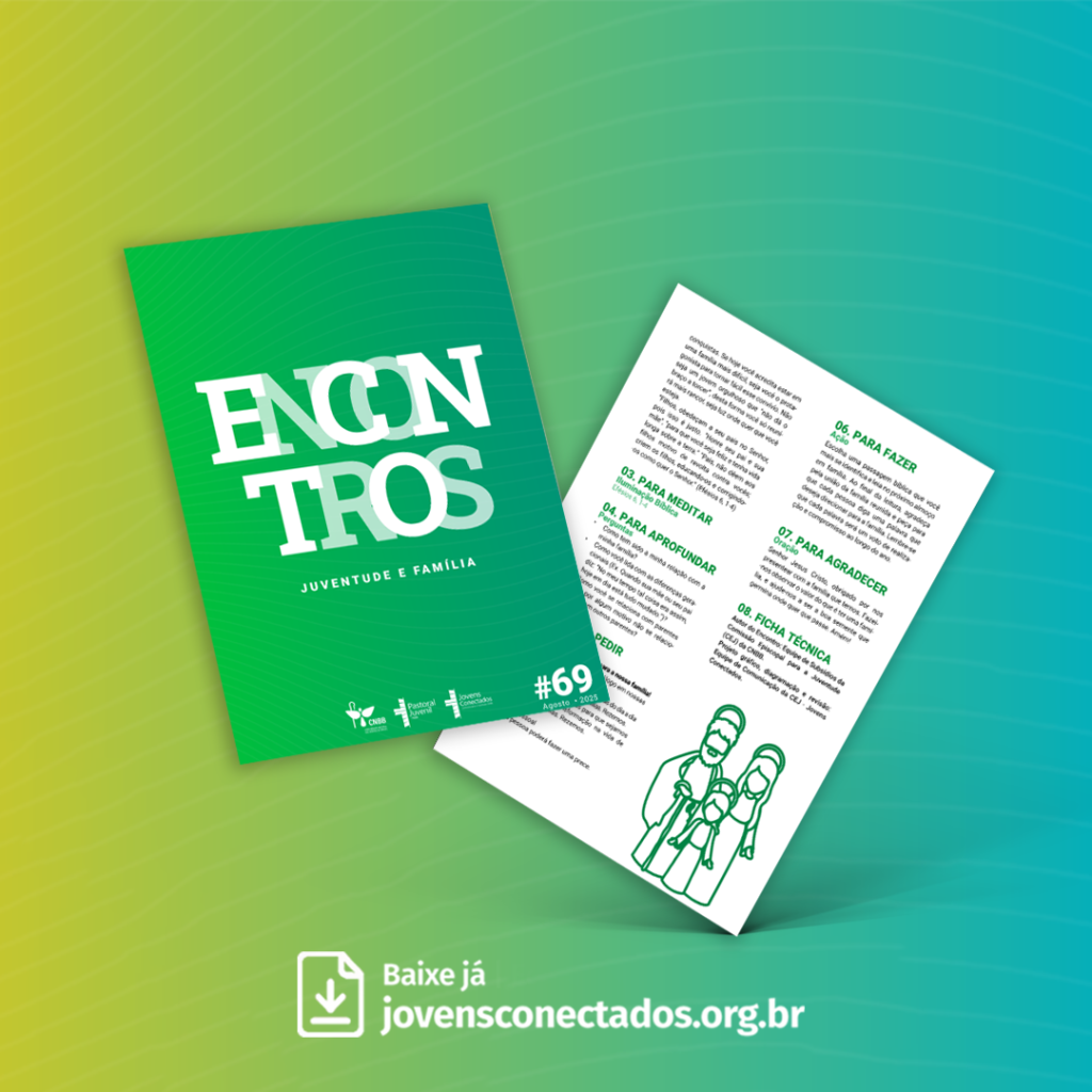 O Encontro #69 Juventude e família convida os jovens a refletirem sobre a família como base da vida, espaço de aprendizado, fé e convivência, onde se constroem valores, relações e identidade. À luz da Palavra de Deus, o subsídio ajuda a compreender a importância do respeito entre gerações, do diálogo sincero e da valorização da experiência de pais, mães e avós, mostrando que, mesmo em meio às diferenças e desafios do tempo presente, a família permanece como lugar privilegiado de amor, cuidado e esperança.