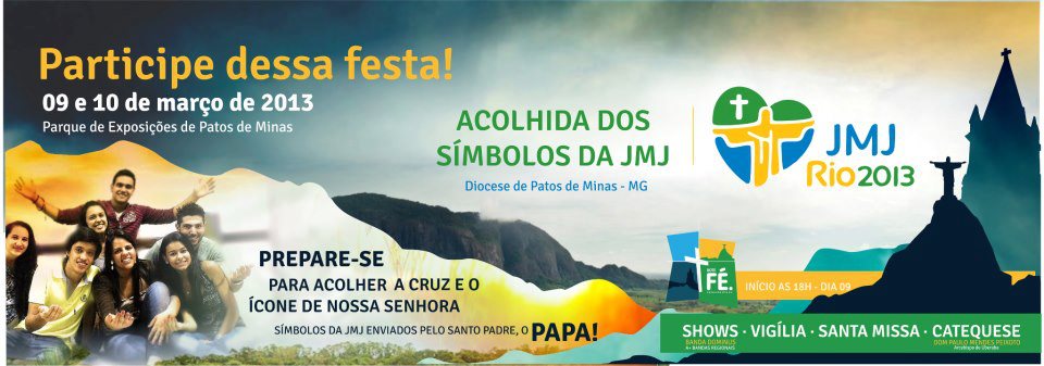 Nos dias 9 e 10 de março, a Diocese de Patos de Minas receberá a Cruz e o Ícone de Nossa Senhora, símbolos da Jornada Mundial da Juventude. Para celebrar esse momento está sendo preparado o Bote Fé Patos de Minas que busca reunir centenas de jovens de toda região no Parque de Exposições Sebastião do Nascimento.