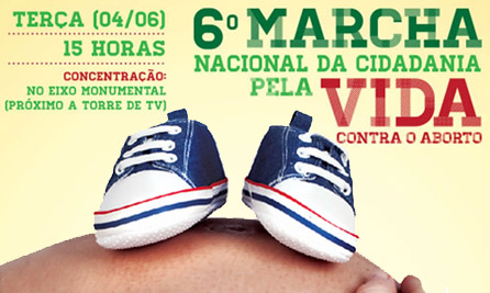 A 6ª Marcha Nacional da Cidadania pela vida contra o aborto vai acontecer acontece na terça-feira, dia 04 de junho, em Brasília.