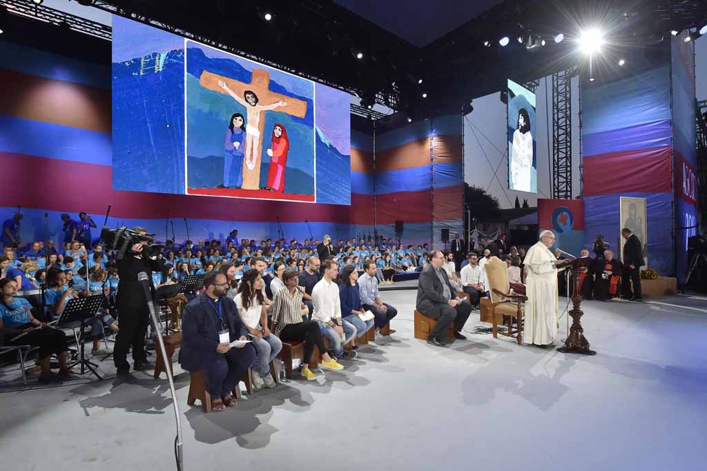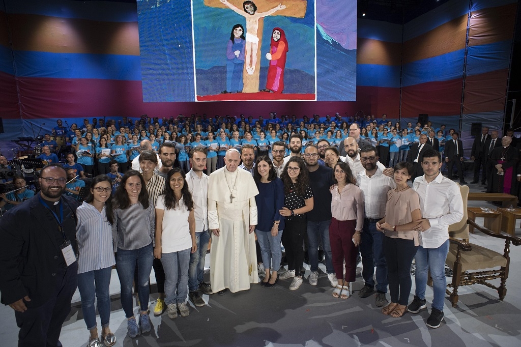 “Que a indiferença que destrói as relações possa ser vencida pela sua capacidade de proximidade, sobretudo em relação aos que passam necessidade. Diante do desprezo e do cinismo até mesmo verbal que humilha os que já são duramente provados pela vida, as pessoas encontrem em vocês generosidade e capacidade de ternura. Que os rejeitados, especialmente entre os jovens como vocês, encontrem em seu coração, livre e aberto, um porto acolhedor. É isso que o Evangelho de Jesus pede. Como escrevi na recente Exortação Apostólica (Christus vivit), endereçada a vocês: “O que ele toca se torna jovem, se torna novo, enche de vida.”