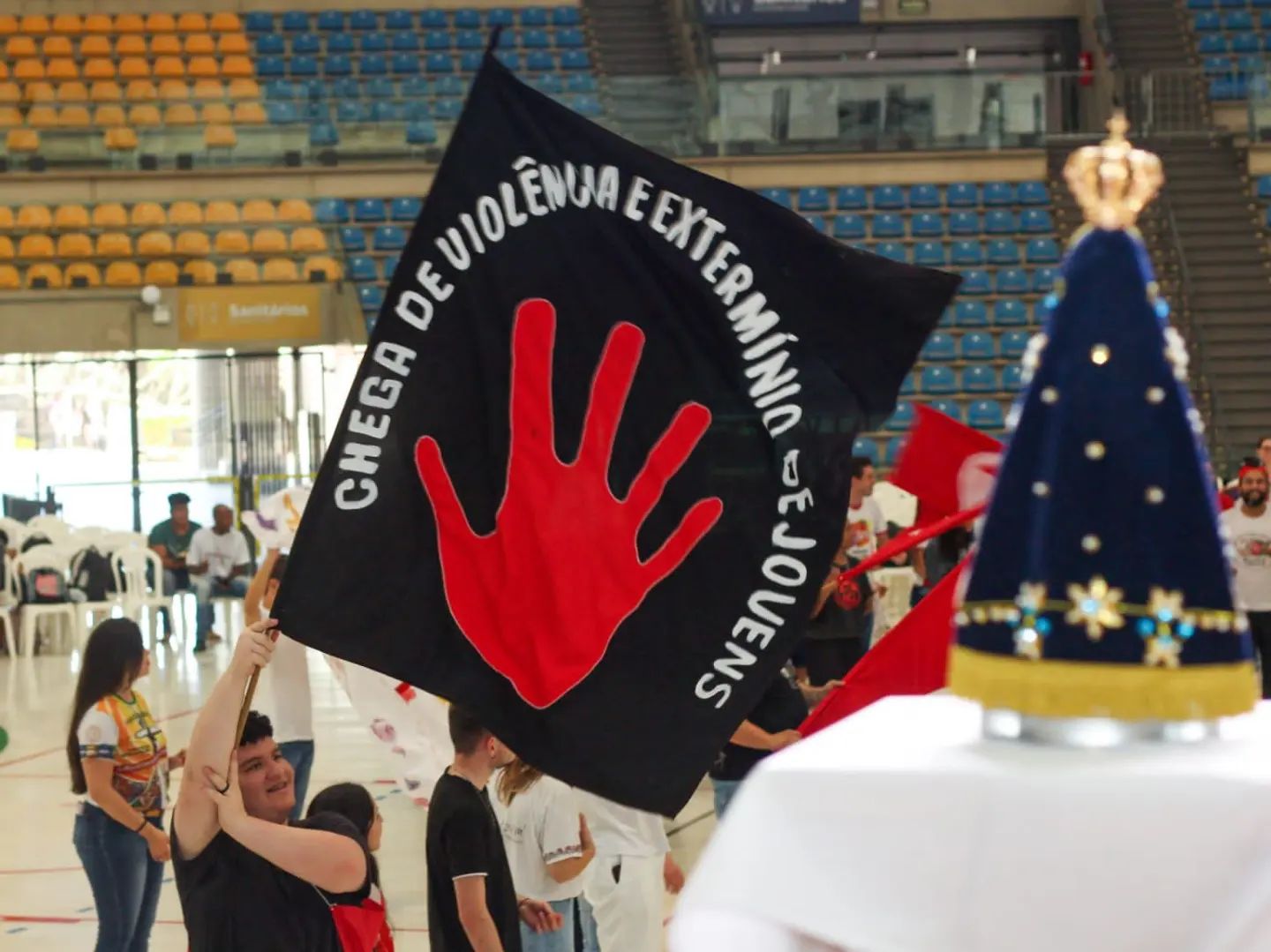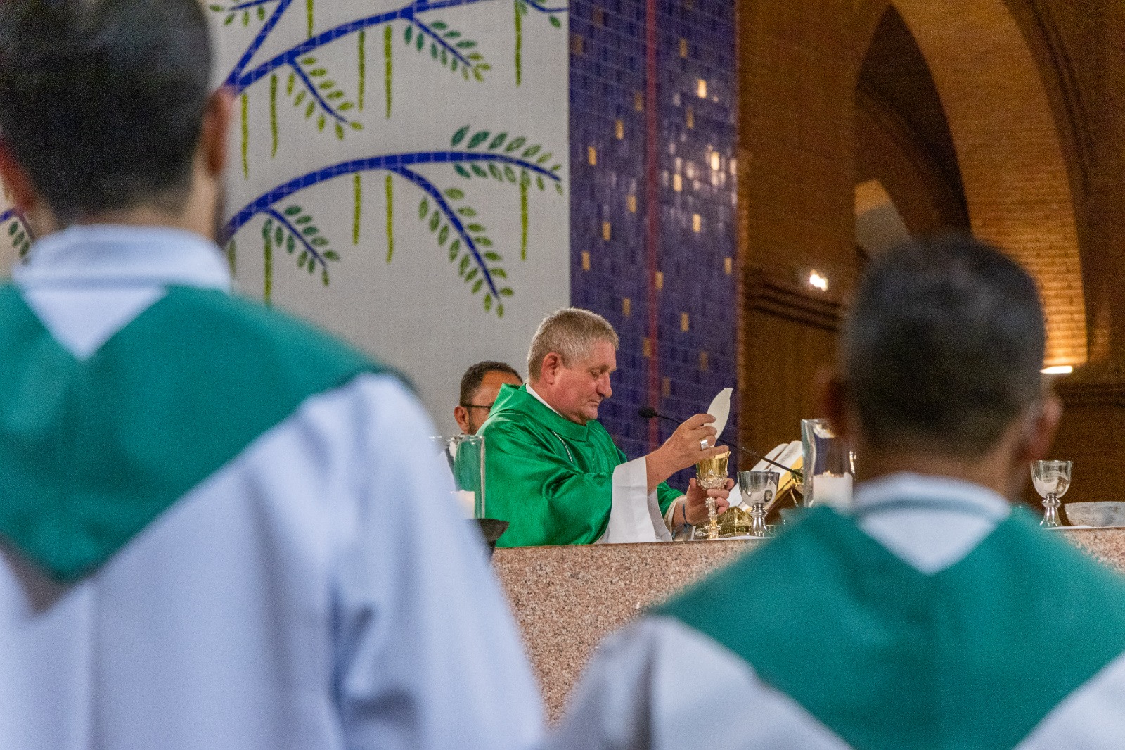 “Exorto-os a seguirem em frente com a coragem, a ousadia e a criatividade que lhes são características, sem desanimar nem deixar que lhes roubem a esperança. Saibam que estarão sempre amparados pela intercessão do Apóstolo do Brasil e pela proteção maternal da Virgem Santíssima, Mãe de Deus e nossa Mãe”.