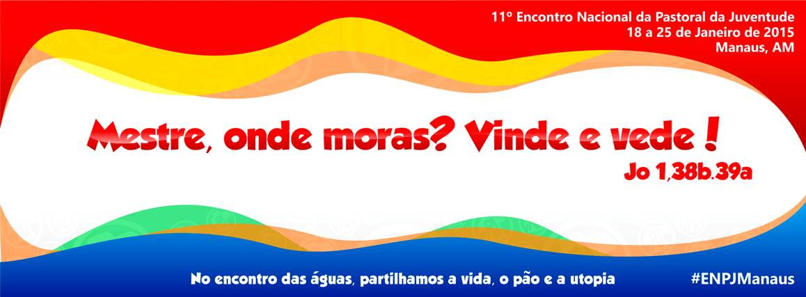 De 18 a 25 de janeiro de 2015, acontecerá na Arquidiocese de Manaus, Regional Norte I (AM/RR) da CNBB, o 11º Encontro Nacional da Pastoral da Juventude (ENPJ). O lema é “NO ENCONTRO DAS ÁGUAS, PARTILHAMOS A VIDA, O PÃO E A UTOPIA”, com iluminação bíblica: “MESTRE ONDE MORAS? VINDE E VEDE” (Cf. Jo 1, 38b.39a). Este Encontro acontece com a cada três anos e está sendo preparado para receber centenas jovens de todos os 18 Regionais da Igreja no Brasil.