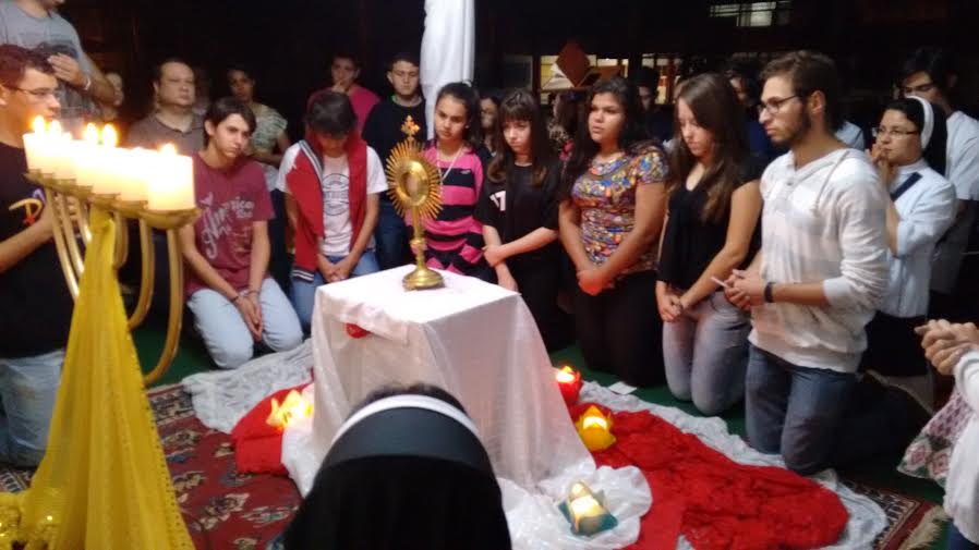 Na presença de Jesus eucarístico os jovens apresentaram seus sonhos, seus planos e o desejo de também eles aprenderem a amar com um amor sem medidas, tal e qual o Coração de Jesus.