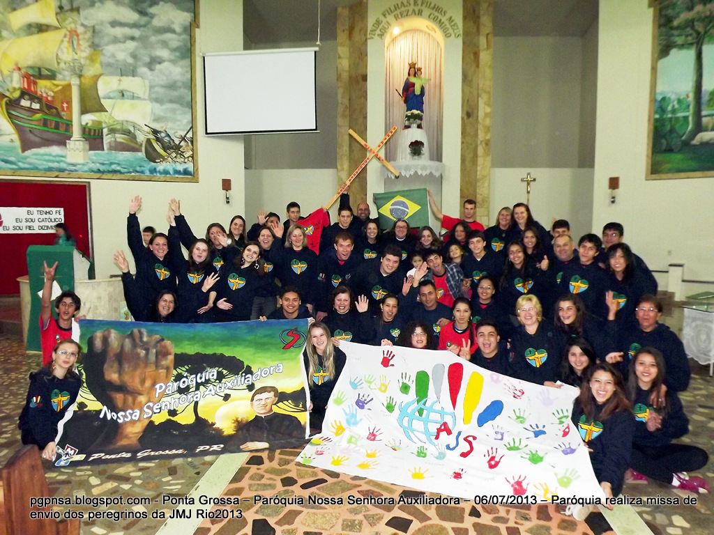 Comemorando a data de 17 dias, para o início da Jornada Mundial da Juventude (JMJ), no Rio de Janeiro, a Paróquia Nossa Senhora Auxiliadora, da cidade de Ponta Grossa (Paraná), realizou missa de envio dos seus 56 peregrinos que irão, para este grande evento da Igreja Católica. A celebração contou com a presença de mais de 600 fiéis. Pe. Leo Kieling, um dos peregrinos demonstrava a alegria dos que irão para o evento JMJ.