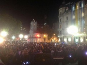 Uma multidão esteve reunida na madrugada desta teça-feira, 19, para uma vigília de oração pelo pontificado do Papa Francisco, na Praça de Maio, em Buenos Aires. Formada em sua maioria por famílias, jovens e adolescentes, a massa de fiéis foi surpreendida às 3h30 da madrugada por uma ligação do Santo Padre direto do Vaticano, duas horas antes de sua Missa de início de pontificado.