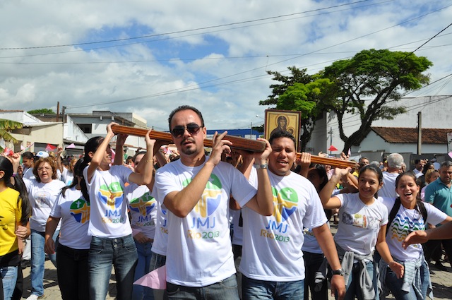 Em caminhada de três quilômetros, a juventude, saiu animada até a Paróquia Santa Cecília, bairro Manejo, onde mais um grupo de jovens recebeu os sinais, em direção a Praça do Tobogã, bairro Cristo Ressuscitado, onde o bispo diocesano Dom Francisco Biasin e padres da cidade, acolheram para os peregrinos para a Missa.