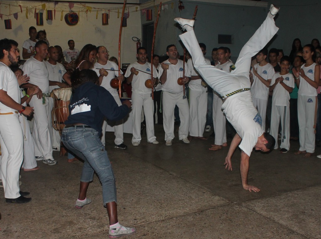 Teve também os franceses aprendendo capoeira e participando do Arraial da Paróquia Santos Apóstolos”.