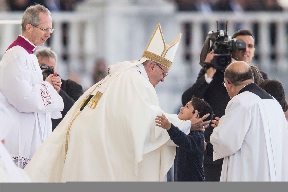 Papa abraça Lucas, brasileiro curado por milagre de Pastorinhos de Fátima