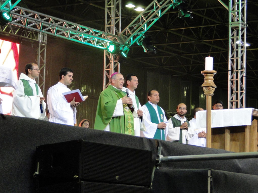 Após a catequese, Dom Alberto Taveira presidiu a Santa Missa, que contou com a presença de vários padres e religiosos, e juntamente com muitos jovens realizaram uma celebração cheia de alegria própria da juventude. A animação musical da catequese e da santa missa ficou sob a responsabilidade da Banda CAJU (Casa da Juventude Comunidade Católica).